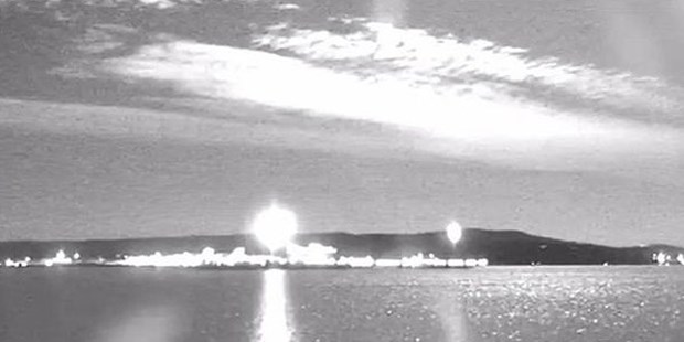 Dev ışık kütlesi Gladstone sahili açıklarını adeta güneş gibi aydınlattıktan sonra büyük bir gürültüyle denize düştü.